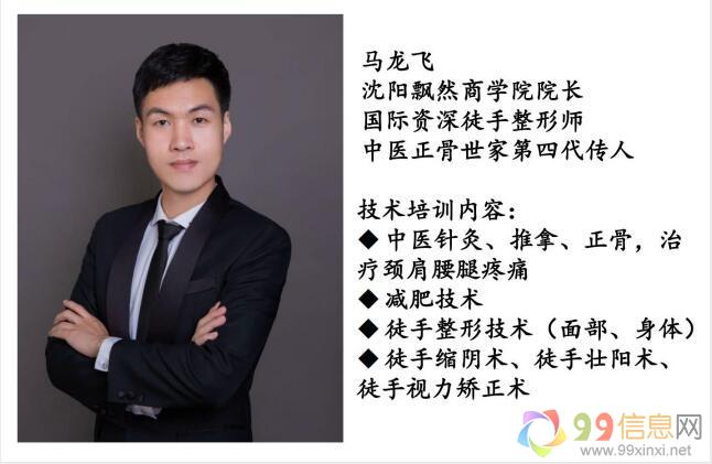 马龙飞,沈阳飘然商学院院长、国际资深徒手整形师、中医正骨世家第四代传人99信息网www.99xinxi.net。出身中医世家,自幼随祖父学习中医,2005年赴韩国留学深造,将韩国的美容技术理念与中国中医手法相结合,并经过多年临床实践,总结出: